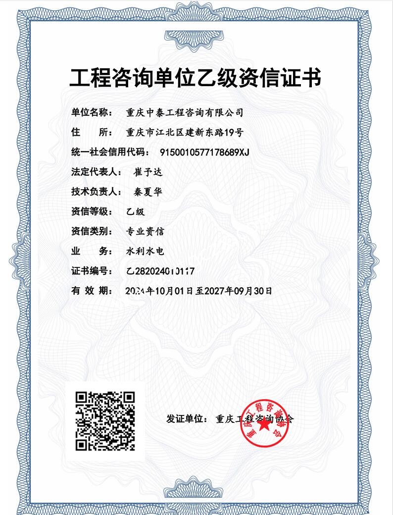 重慶中泰工程咨詢有限公司咨詢資質